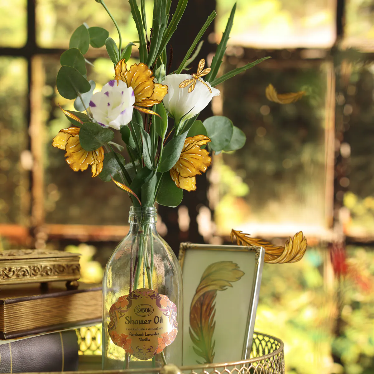We invite you to join in! Imagine your soap glass bottles as plant pots for cascading ivy and glossy roses, your gift boxes as vases for brightly colored wildflowers… re-enchanting objects can be done in infinite ways.